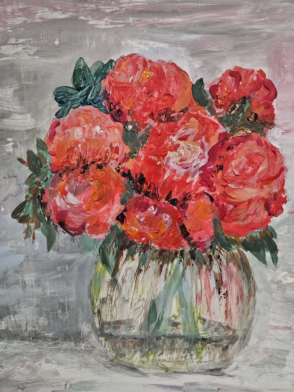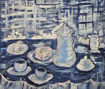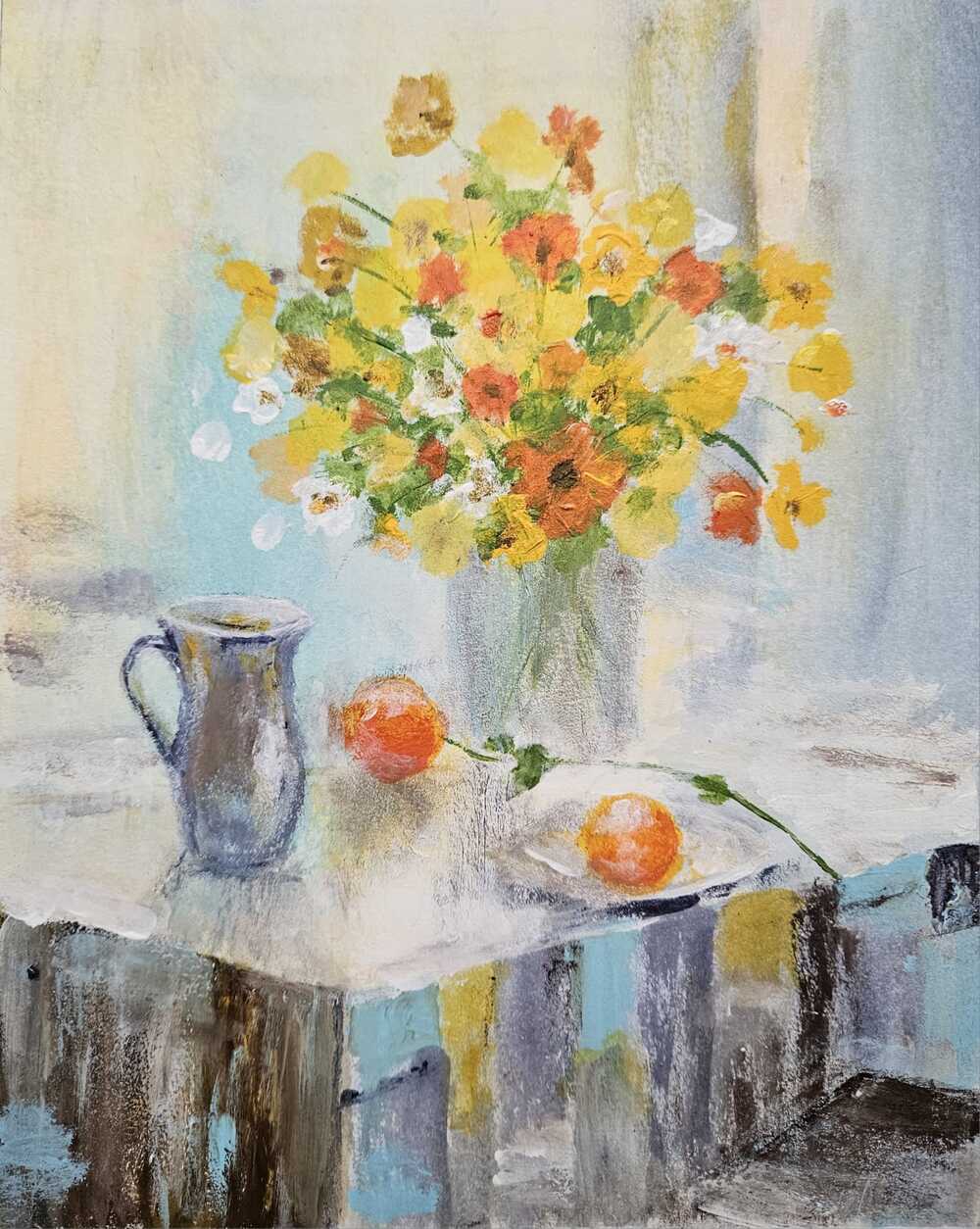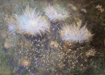 "Ostatnie spotkania Grupy Malarskiej skupiały się na różnorodnych tematach. Teoretycznie najprostsza abstrakcja spowodowała trochę problemów. Stworzyć obraz ściągający uwagę widzów tylko kolorem, kompozycją czy innymi formalnym i środkami to nie lada wyzwanie. Odskocznią okazały się tematy realistyczne, do których inspiracją były dzieła innych twórców. Tu królowała martwa natura z kwiatami i pejzaże. Jak zawsze uczestnicy na początku każdego spotkania prezentują prace wykonane w domu. Te dają asumpt do ożywionych dyskusji, zachwycają swoim poziomem i ciekawymi rozwiązaniami plastycznymi.