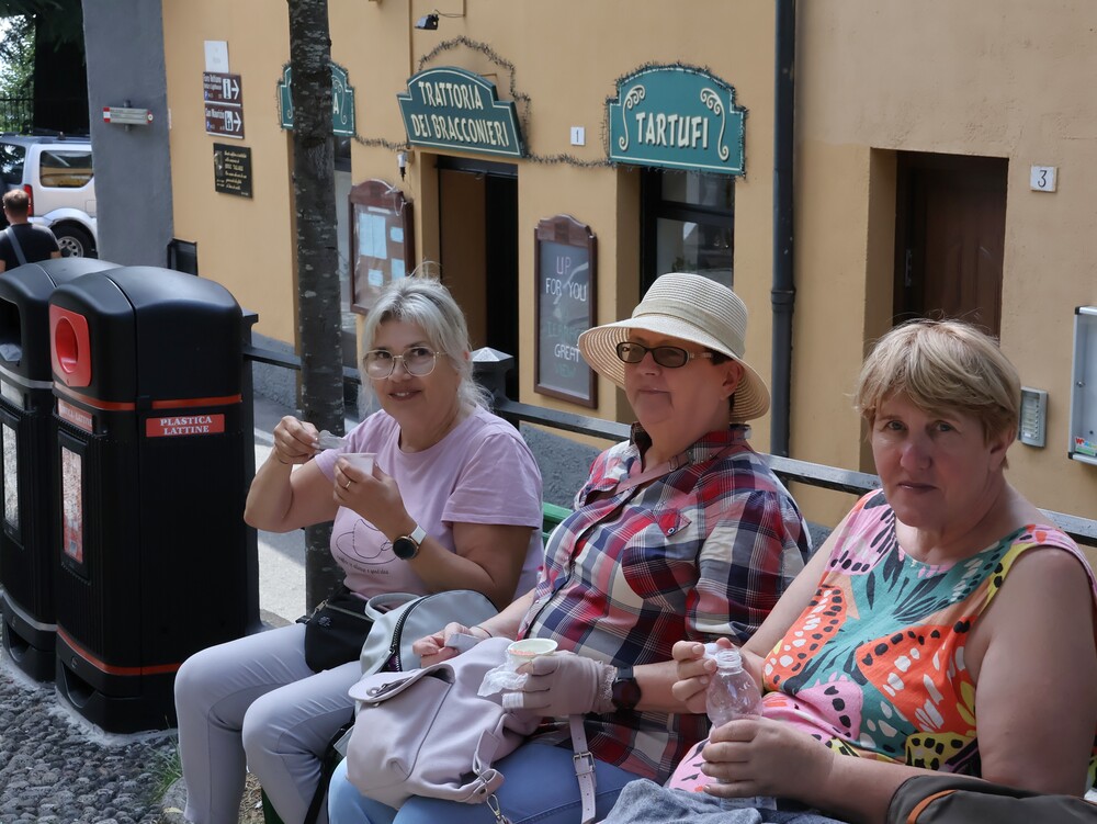 Na całotygodniową wycieczkę zwaną „Odyseją Alpejską” wyruszyliśmy w niedzielny wieczór 24.08.2025 roku, autokarem organizatora wycieczki „Plus Wakacje” . Pierwszy odcinek podróży, to ponad 1100 km przez Czechy, Austrię, Niemcy aż do Szwajcarii. Zatrzymaliśmy się w urokliwym i luksusowym miasteczku Sankt Moritz. Najważniejszym celem w tym dniu była oczekiwana przez wszystkich - przejażdżka kolejką Bernina Express, po najbardziej spektakularnej trasie kolejowej wiodącej przez Alpy. Piękna pogoda sprzyjała podziwianiu malowniczej górskiej scenerii z imponującymi lodowcami i jeziorami. W roku 2008 kolejka została wpisana na elitarną Listę Światowego Dziedzictwa UNESCO. Podróż trwała 2,5 godziny. Ostatnia stacja to Tirano, już we Włoszech. Po tym unikalnym, alpejskim doświadczeniu odebrał nas autokar i zostaliśmy przewiezieni do Hotelu Brescia w Darfo Boario Terme, gdzie nocowaliśmy trzy noce i korzystaliśmy z posiłków /śniadań i obiadokolacji/. Mieliśmy okazję, by skosztować typowo włoskich potraw i doświadczać nieoczywistych dla nas smaków.