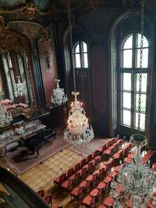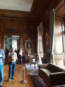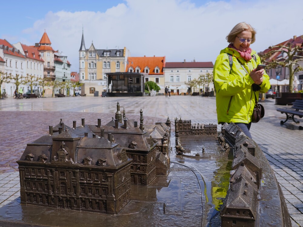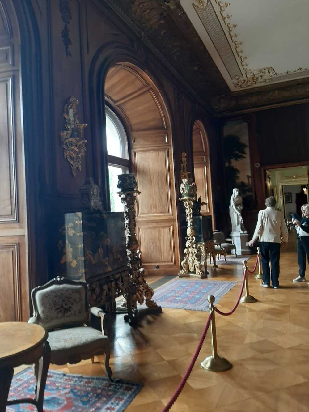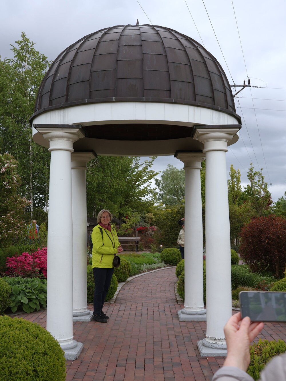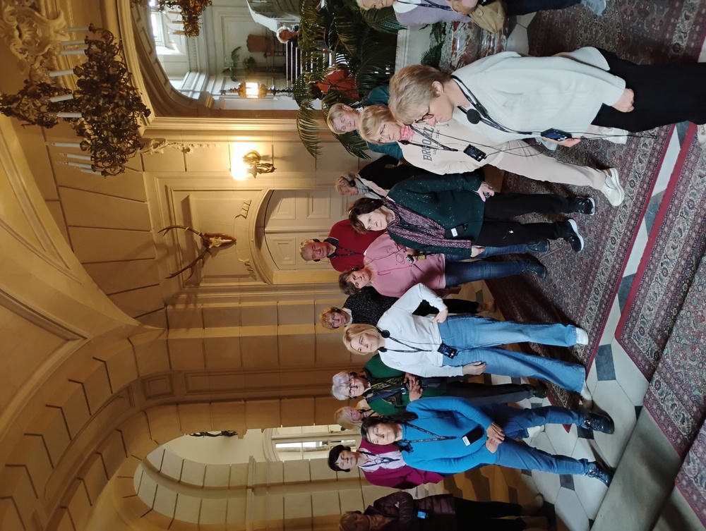 Na szczęście pogoda była (trzeba tu użyć słowa, ostatnio bardzo modnego) bardzo dynamiczna: deszczyk, deszcz, wiatr, ponure chmury i na odmianę rzęsiste słońce. Pierwszy punkt programu, to zamek/pałac w Pszczynie. Było nas na tyle dużo, że podzielono nas na dwie grupy. Olśniewające wnętrza, sala lustrzana, romantyczna historia księżnej Daisy, książę Bolko. Po zwiedzeniu zamku pierwsza grupa udała się do parku, a druga do Pokazowej Zagrody Żubrów. Pośród starodrzewu wybudowano pawilon edukacyjny prezentujący faunę charakterystyczną dla okolic. Oczekiwanie na karmienie żubrów urozmaicały nam wszędobylskie i dość hałaśliwe pawie. O umówionej godzinie dwie przewodniczki, po jednej dla każdej z grup, przejęły nas w celu oprowadzenia po Pszczynie i przybliżenia historii tego niezwykłego, śląskiego miasta, wpierw piastowskiego, potem czeskiego, wolnego państwa stanowego, niemieckiego i wreszcie polskiego. Przewodniczki i Pszczynę pożegnaliśmy w promieniach słońca, tuż po krótkiej ulewie. Ostatni punkt programu, Ogrody Kapias w Goczałkowicach-Zdroju, dopełniły wrażenia wyniesione z książęcego parku. Kapias, to nazwisko założycieli centrum ogrodniczego. Od 1979r., już trzecie pokolenie zajmuje się nie tylko biznesem, ale nieodpłatnym udostępnianiem ogrodów tematycznych: angielskiego, japońskiego, skandynawskiego, śródziemnomorskiego, romantycznego, wiejskiego, letniego, jesiennego, zimowego itd. To dobry przykład na połączenie życiowej pasji, biznesu i służby społeczeństwu. I znów, gdy wsiedliśmy do autobusu, by wyruszyć w drogę powrotną, dał o sobie znać deszcz. Teraz nie zrobił on już na nas wrażenia. Na koniec należy nadmienić, że koszty wycieczki były naprawdę niskie dzięki dofinansowaniu z projektu oraz środków własnych UTW.